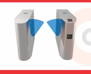 Flap barrier adalah jenis turnstile otomatis dengan penghalang berbentuk flap (seperti sayap) yang terbuka dan tertutup secara horizontal. Teknologi ini sering digunakan untuk sistem akses yang memerlukan keamanan tinggi dan kecepatan tinggi.Karakteristik Flap Barrier: